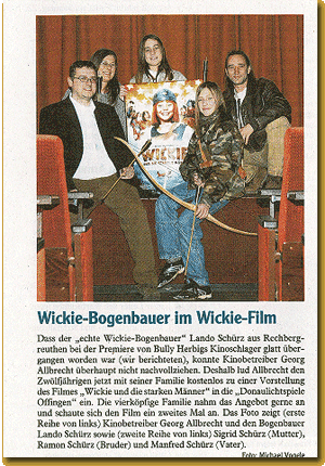 Zeitungsartikel vom 11.11.2009 "Wickie-Bogenbauer im Wickie-Film